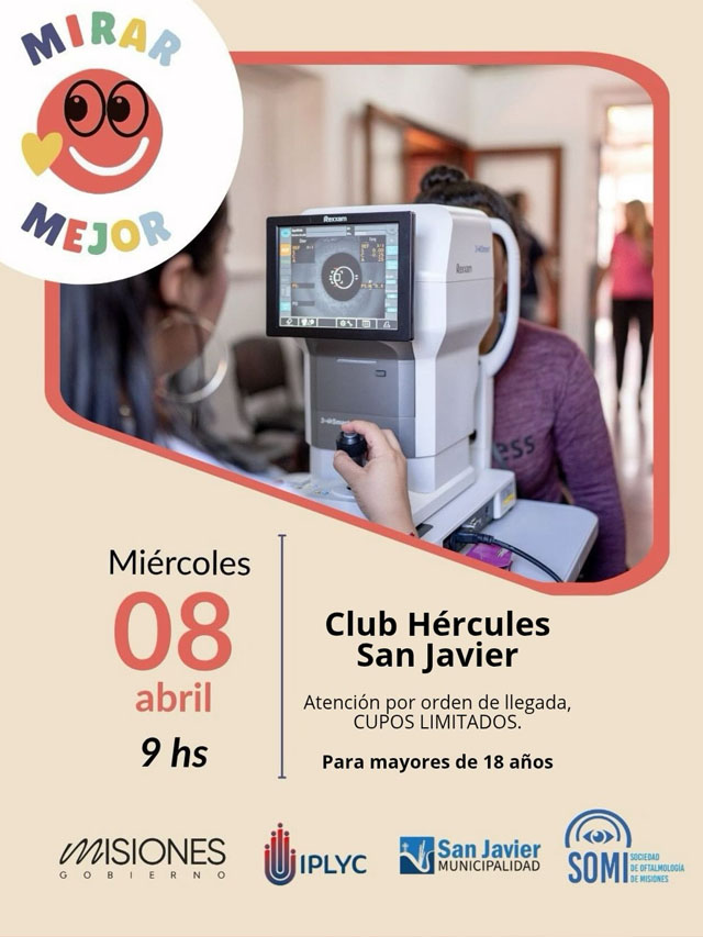 AGENCIA MISIONES.UNO | Este miércoles 8 de abril, desde las 9:00 horas, se realizará en el Hércules de San Javier una nueva jornada del programa Mirar Mejor, destinada a brindar controles y atención oftalmológica gratuita para personas mayores de 18 años.